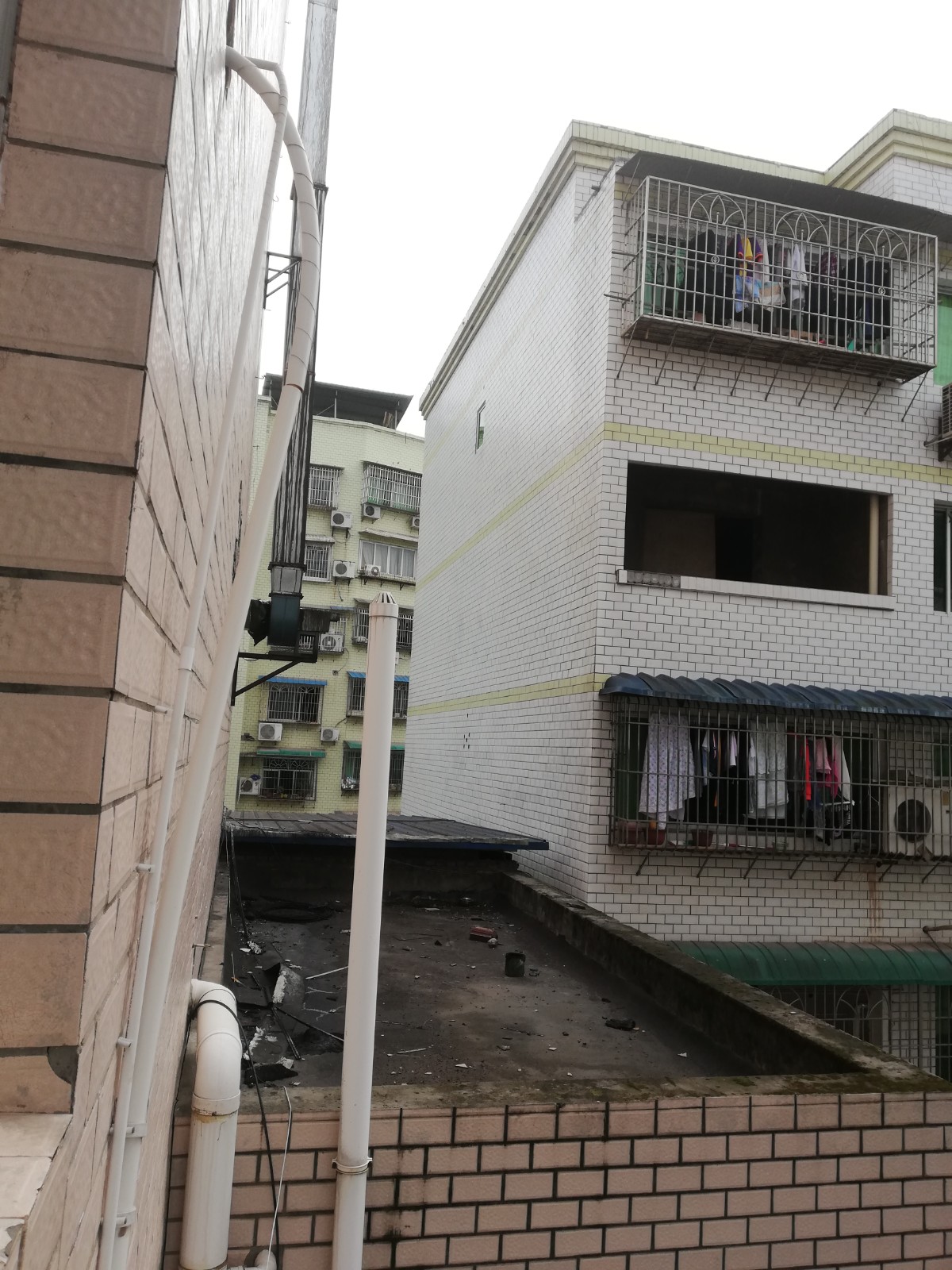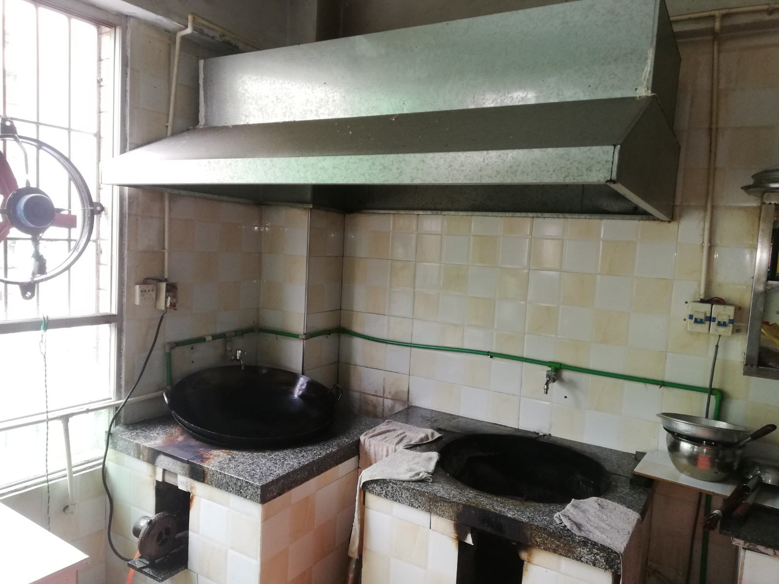 现场情况:就业局食堂,原有油烟排放未做净化,山墙二楼平台安装难度大。