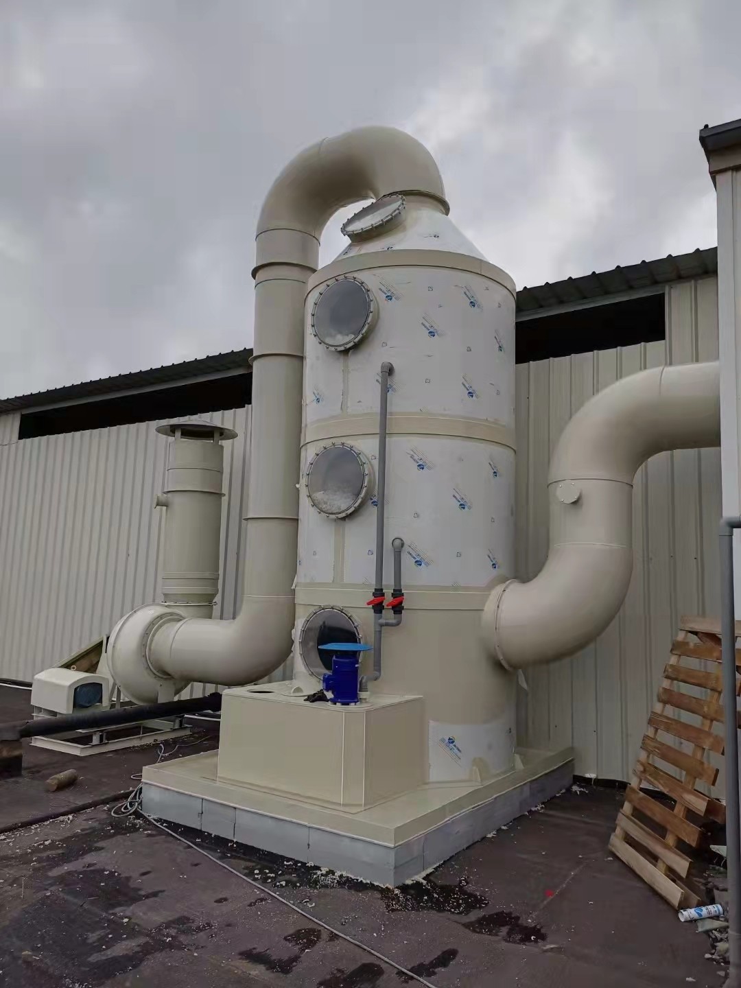 工作原理:涉及废气与喷淋液体的接触和反应。废气首先被引入喷淋塔的底部,然后通过塔内设置的填料层。在这个过程中,废气与填料充分接触,填料表面的液膜增大了气液接触面积,提高了吸收效率。塔顶设置的喷淋装置会向下喷淋液体,这些液体通常是水或含有化学药剂的溶液。当喷淋液体与废气接触时,废气中的有害物质会被液体吸收或发生化学反应,从而达到净化废气的目的。经过喷淋塔处理后的废气,其有害物质浓度会大幅降低,达到国家排放标准,再排放到大气中。